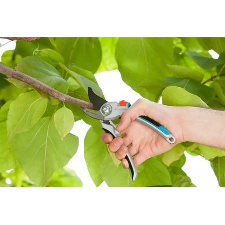 Use the powerful and robust Alu Garden Secateurs B/L from GARDENA for demanding cutting work. Thanks to their 25 mm cutting diameter, they are ideally suited for easily cutting stronger branches and twigs with larger diameters in green wood. The ergonomically-shaped ErgoTec handles of the secateurs are made of high-quality and robust aluminium. The Garden Secateurs not only lie comfortably in the hand, but also cannot slip due to the built-in soft components. The precision-ground and non-stick coated upper blade and stainless steel lower blade use the bypass cutting principle to ensure clean, plant-friendly and precise cuts. Furthermore, the adjustable joint for readjustment allows reliable and precise cutting over a long time. The blades can be replaced if necessary. After use, you can easily close the Alu Garden Secateurs B/L with the practical single-hand safety lock with just one hand and store them safely. GARDENA offers a long manufacturer's warranty of 25 years on this quality German-made product. Express your vision with precision. Easy to use, effective and durable cutting tools for creative gardeners.