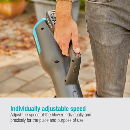 The powerful, compact and handy GARDENA battery blower is therefore ideal for a wide range of cleaning jobs.
