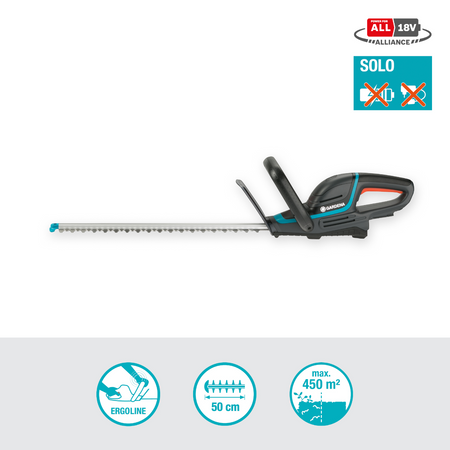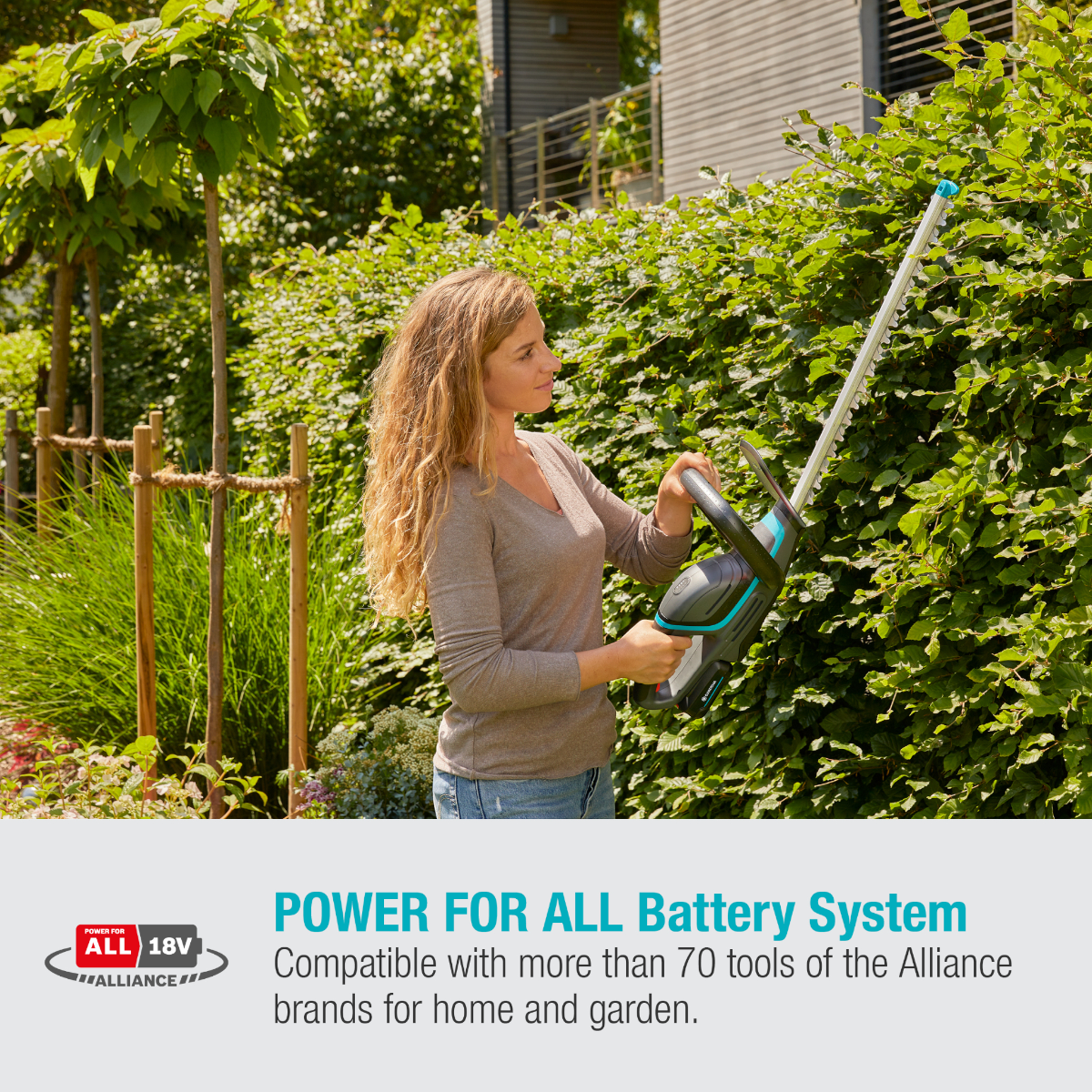 The GARDENA Battery Hedge Trimmer ComfortCut 50/18V P4A solo is supplied without a battery and charger. It is compatible with all 18V batteries from the POWER FOR ALL ALLIANCE, one of the largest multi-brand battery alliances of leading manufacturers. These batteries can be used for numerous devices around the house and garden. So you save money and remain flexible! Passion powered by GARDENA – Battery garden equipment that gives you the freedom to create.