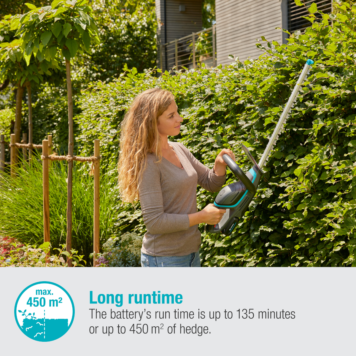 Cordless, convenient, lightweight and easy to use: With the GARDENA Battery Hedge Trimmer ComfortCut 50/18V P4A, you can trim medium-sized hedges without much effort at all.