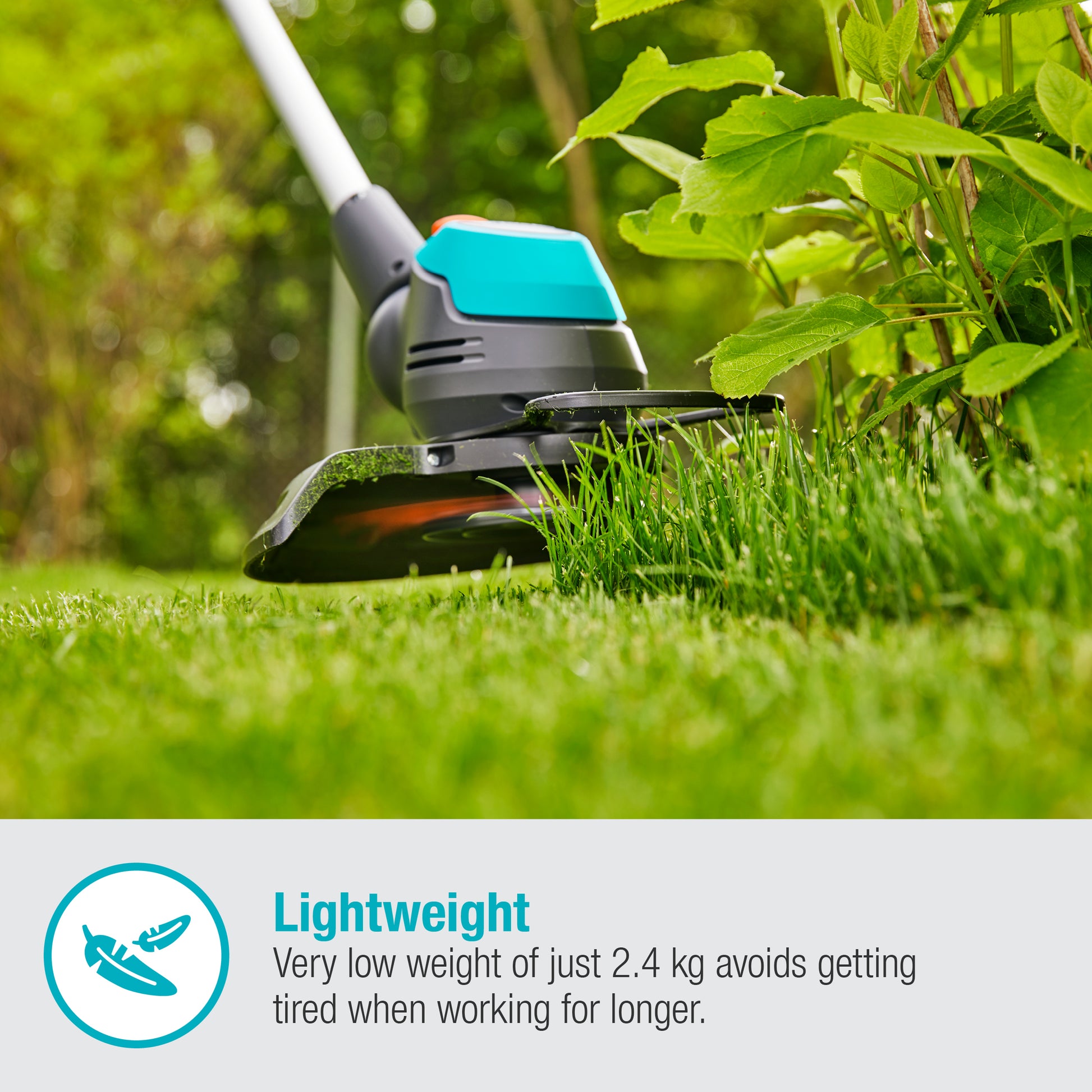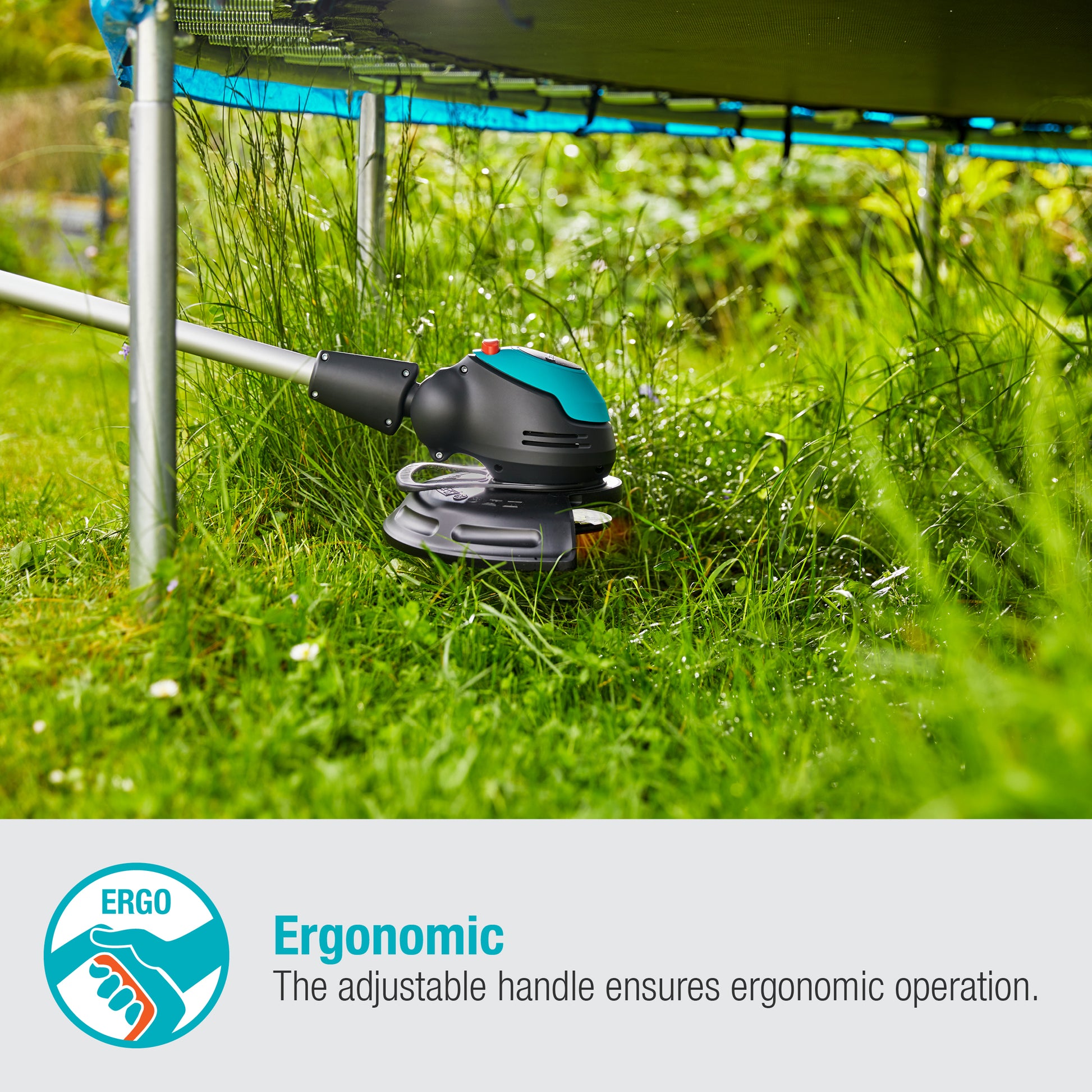 The GARDENA Battery trimmer EasyCut 23/18V P4A solo is supplied without a battery and charger. It is compatible with all 18V batteries from the POWER FOR ALL ALLIANCE, one of the largest multi-brand battery alliances of leading manufacturers. These batteries can be used for numerous devices around the house and garden. So you save money and remain flexible! Passion powered by GARDENA – Battery garden equipment that gives you the freedom to create.