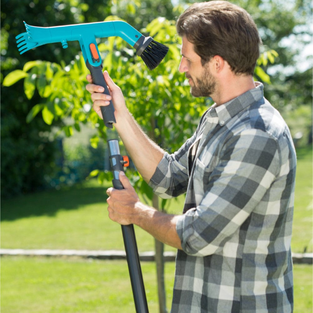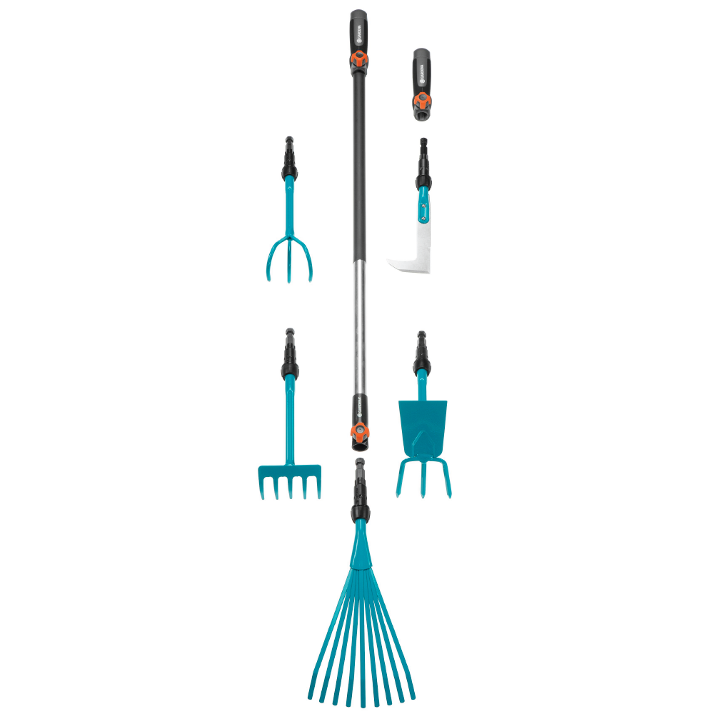 With the 78 cm long combisystem Extension Handle for Hand Tools from GARDENA, you can easily and flexibly extend your combisystem Hand Tools. The GARDENA combisystem allows for flexible use, thanks to the exchangeable attachments. The extension handle is compatible with all hand tools of the GARDENA combisystem. The secure connection between attachment and handle ensures that you can always work comfortably. With the fastening screw, you fixate the used combisystem attachment. The screw is safely attached in such a manner that you cannot lose it. The fastening screw ensures a tight connection between handle and attachment. Simply remove the handle from the hand tool, insert the tool into the extension handle and secure with the screw. Afterwards, insert the handle of the hand tool into the extension handle. The extension handle allows comfortable work without bending down. Thanks to the high-quality aluminium, the handle is light and the skin-friendly coating makes sure it fits perfectly in your hand. The integrated eyelet and the combisystem Tool Rack Flex (Art. No. 3505-20) provide space-saving storage. The combisystem Extension Handle for Hand Tools from GARDENA convinces with 25 years of warranty. Let your tool family grow. GARDENA combisystem. Interchangeable. Durable. For any gardening task.