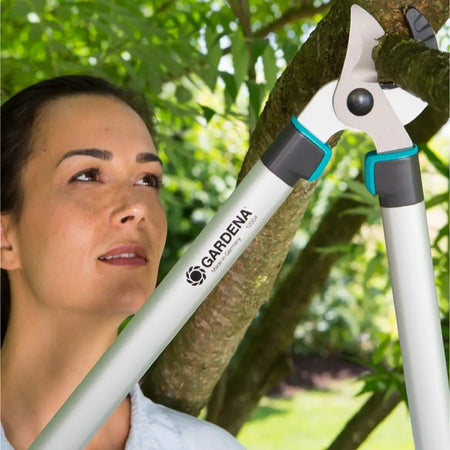 If you want to cut hard and dry wood from trees or shrubs, the EasyCut 680 A from GARDENA is the Pruning Lopper for you. Its low weight of only 1 kilogram, thanks to the use of lightweight materials such as aluminium and the well-designed handles. Less weight means more comfortable and fatigue-free work for you. The ergonomically designed ErgoTec handles with soft grip components provide the great slip resistance and allow you work safely and effortless. The loppers are so effective when cutting hard and dry wood because they work with the anvil cutting principle. It features a narrow and very sharp upper blade, while the wide anvil surface distributes the pressure and supports the branch to prevent damage or chipping of the bark. The cutting blade is protected with a non-stick coating to reduce friction and prevent rust. The EasyCut 680 A is a quality German-made GARDENA product that comes with a 25-year manufacturer's warranty. Express your vision with precision. Easy to use, effective and durable cutting tools for creative gardeners.