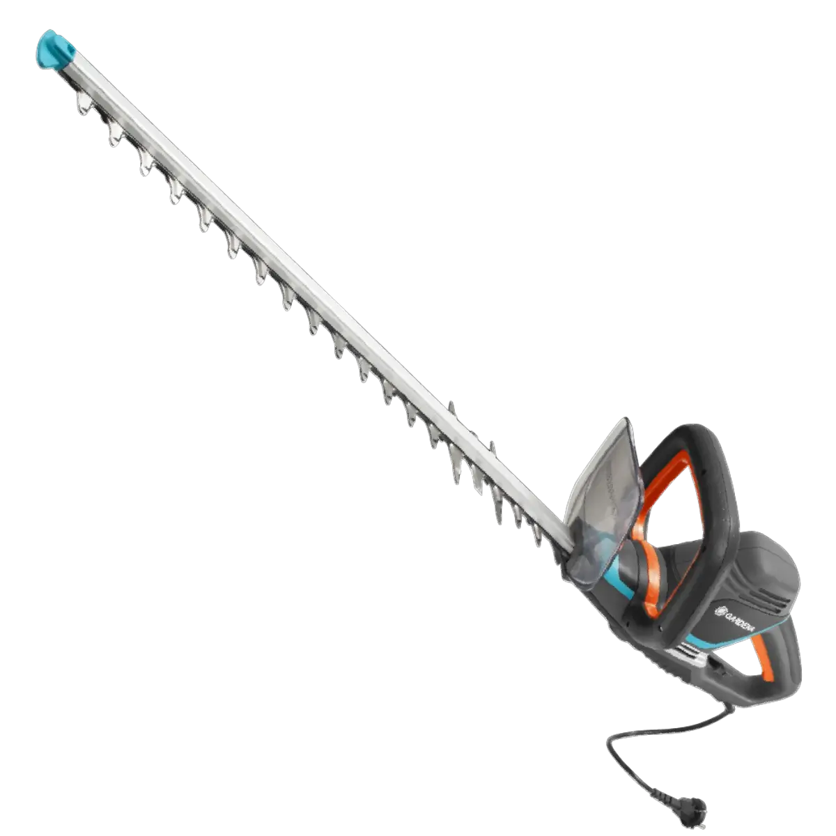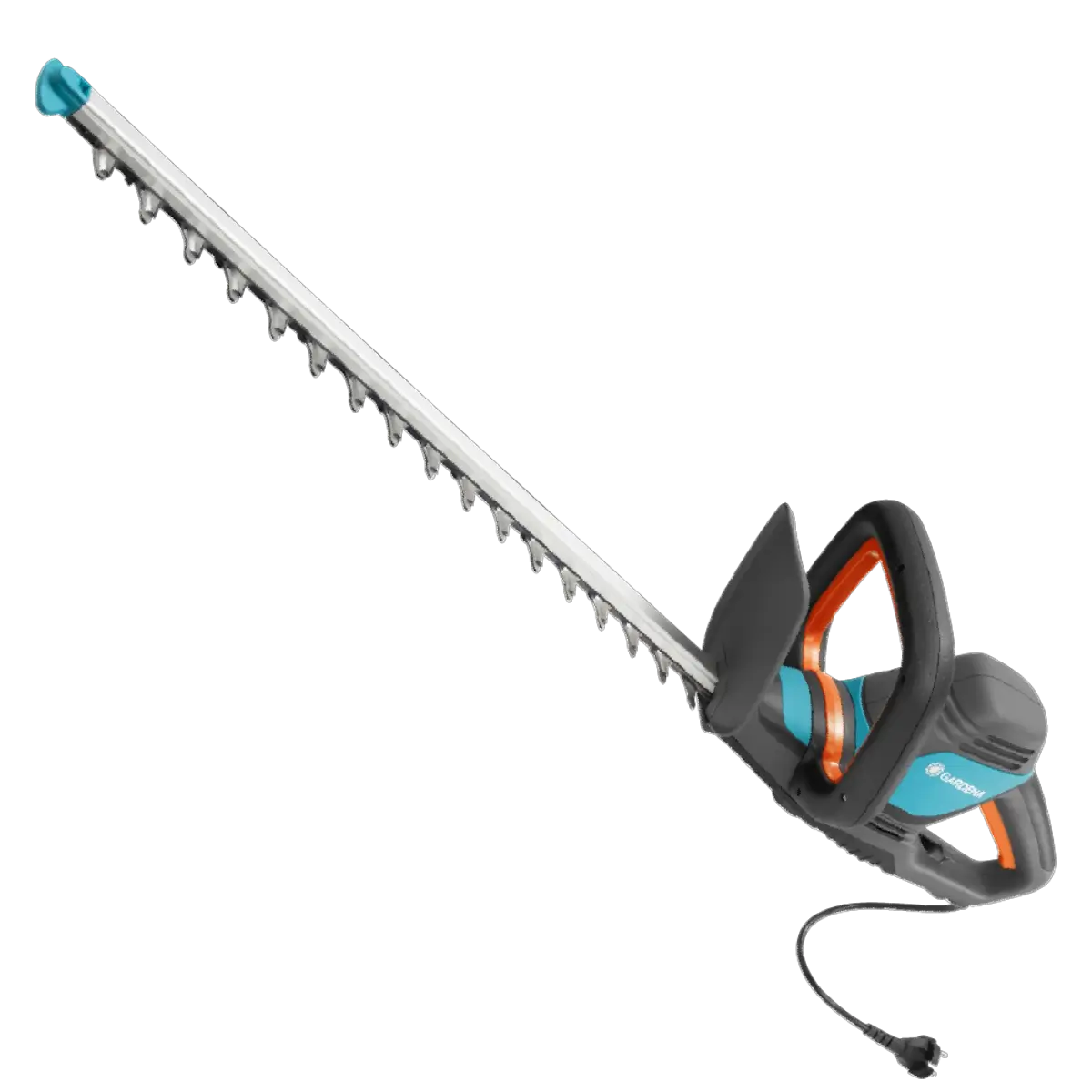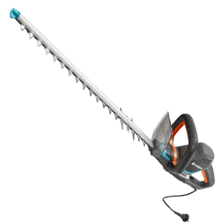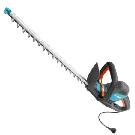 The powerful Electric Hedge Trimmer ComfortCut 600/55 from GARDENA helps you prune medium and large hedges reliably. The hedge trimmer has a well-balanced design so that you can guide it optimally, even when working for longer periods of time. The ergonomic ErgoLine handle fits comfortably in your hand in any cutting position especially when cutting the sides of the hedge. The easily accessible start button in the ErgoLine handle adds to the comfort and ease of use. The laser-cut precision blades enable you to cut quickly and easily with little effort. With their help you achieve an efficient clean cut of twigs and branches. The impact protection at the end of the ComfortCut 600/55 ensures that the blades are protected when cutting close to the ground or along house walls and garden walls. The cable strain relief increases safety during cutting and prevents unintentional loosening of the cable.