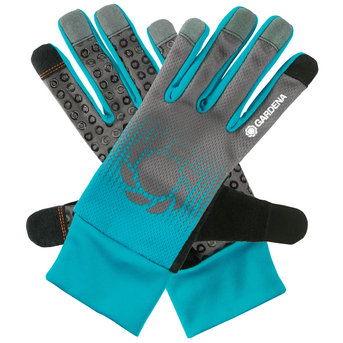 Gardening is even more enjoyable with the Garden and Maintenance Glove in size S from GARDENA. The perfectly fitting work glove is equipped with many innovative features that make light gardening and plant care work such as potting flowers and bedding plants easier. It is well suited for dead-heading and clearing leaves. The silicone coating on the palm of the hand gives a great grip, so you always have everything under control, which is especially helpful when carrying. The main part of the glove consists of a flexible and breathable mesh material. This is a big advantage, especially during longer use, because the hands will not start to sweat excessively. The glove is equipped with sweat absorbent micro-fleece. You get a perfect fit due to the flexible material on the cuff and back of the hand. If you want to use your smartphone or tablet while you are gardening, this is no problem at all. The tips of the index finger and thumb of the smartphone-enabled glove for large hands have the practical Mobile Touch function, so you don't need to take off the gardening glove. In addition, the Garden and Maintenance Glove has been awarded Oeko-Tex® Standard 100 certification, which means that the textiles used are free of harmful substances.