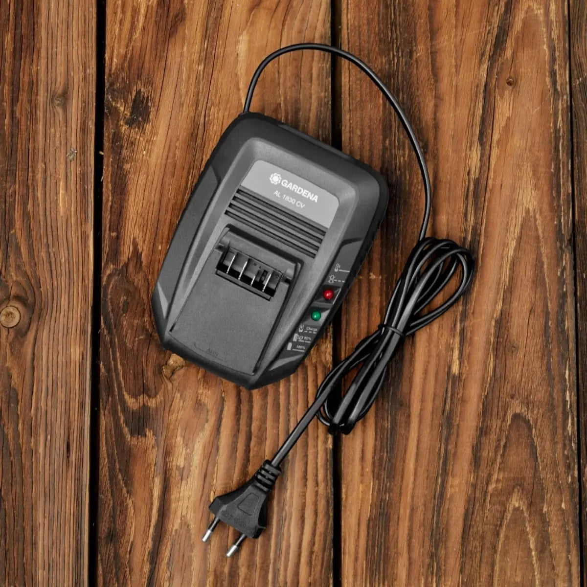 The GARDENA Quick Charger AL 1830 CV is intended for the use with all POWER FOR ALL system batteries. The 2.5Ah battery is fully charged within 60 minutes. The LED display on the charger indicates the charging status at any time.