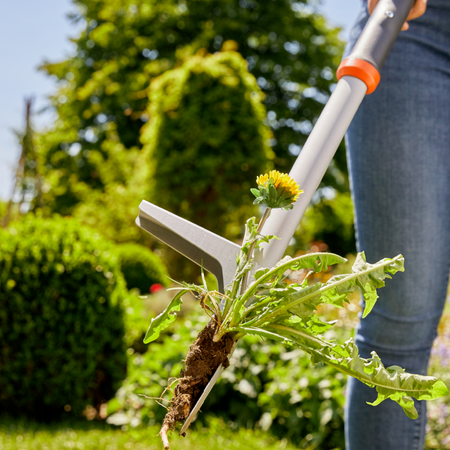 The Weed Puller from GARDENA is the ideal tool to effectively remove unsightly weeds in your lawn and flower beds. After all, strenuous but necessary regular weeding is not the most popular garden chore. However, this weeding tool allows pleasantly simple and effective weeding without polluting the environment. The patented blades of the Weed Puller are particularly narrow and close together, making this design is very well suited to pulling up dandelions in your lawn without leaving large holes. Working with the practical Weed Puller from GARDENA is pleasant and gentle on your back, even over longer periods of time. There is a practical footrest at the lower end of the device, making it easier to dig into the ground. A specially shaped handle enables a comfortable motion when rotating the weeding blade. The integrated release mechanism makes it easier to throw out the weeds. This method of weeding works purely mechanically and without chemicals, protecting your cherished flora and fauna while still maintaining a beautiful and well-kept garden free of dandelions and other weeds. In addition, GARDENA gives a 25-year guarantee on the Weed Puller.