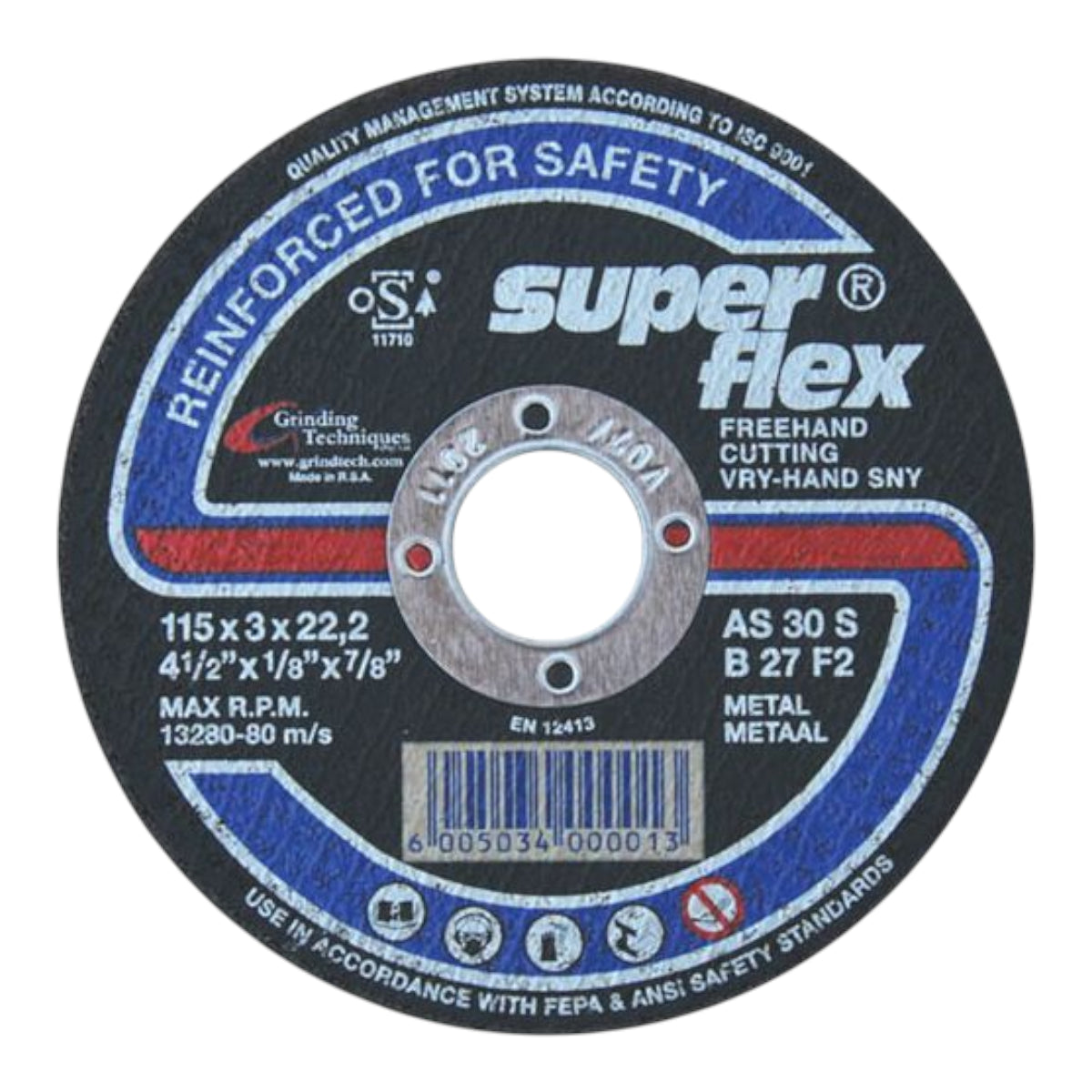 The Superflex Steel Cutting Disc is a high-performance solution designed for precision and speed in metalworking. Built with durable abrasive materials and it delivers clean, efficient cuts through steel. Whether you're a professional fabricator or a DIY enthusiast, this disc offers reliability and control for demanding tasks, making it a trusted companion for any steel-cutting job.