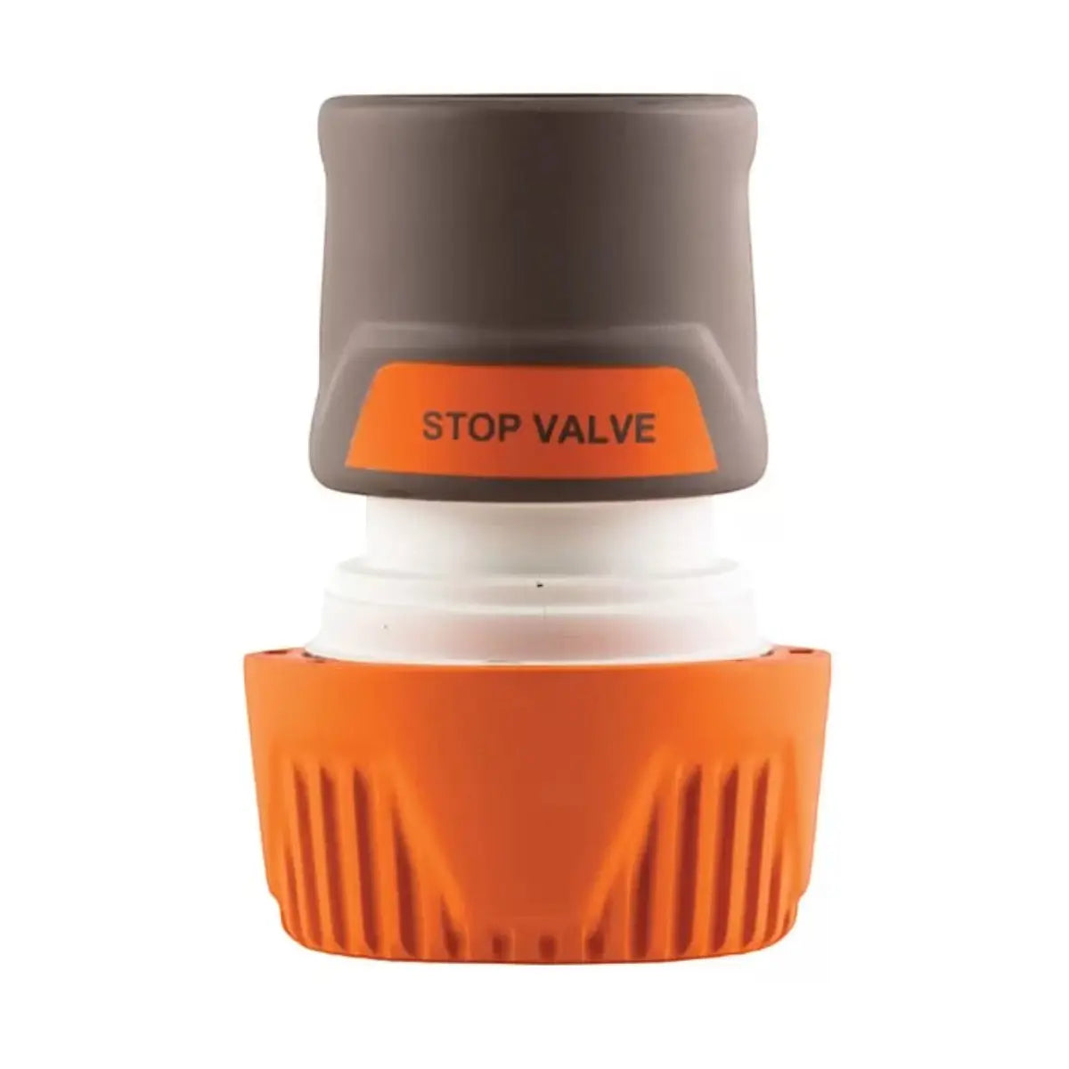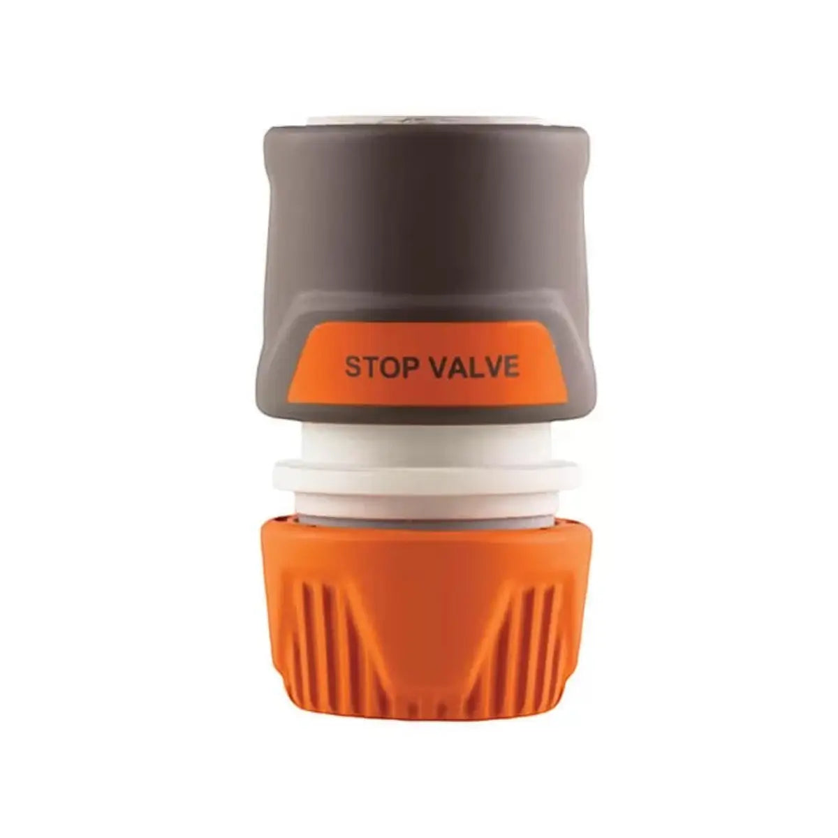 Quickly and easily connects a 12mm garden hose to 12mm hose-end accessories with the added function of controlled water stopping. Simply remove the hose-end accessory such as a sprinkler or gun to automatically stop the water flow.