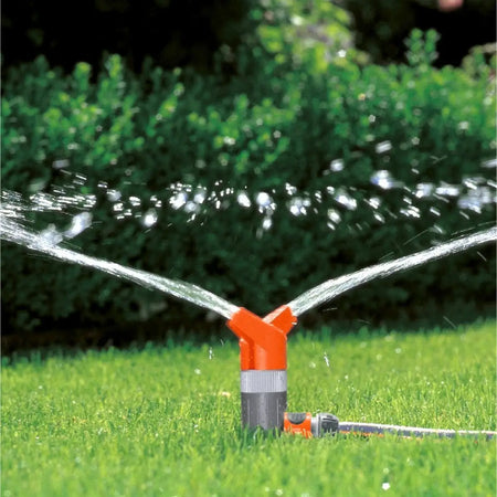 The GARDENA Classic Rose Sprinkler Foxtrot is the ideal sprinkler to water your garden. This round sprayer is best suited for small areas between 9 and 130 m² and has a maximum range of 13 m in diameter. The sprinkler shows an even spray pattern in 360° angle, so you won't have to worry about puddles building up. For a safe and secure stand, the sprinkler is anchored into the ground with the integrated spike. The Classic Rose Sprinkler Foxtrot is Made in Europe and is supported with 5 years of warranty by GARDENA.